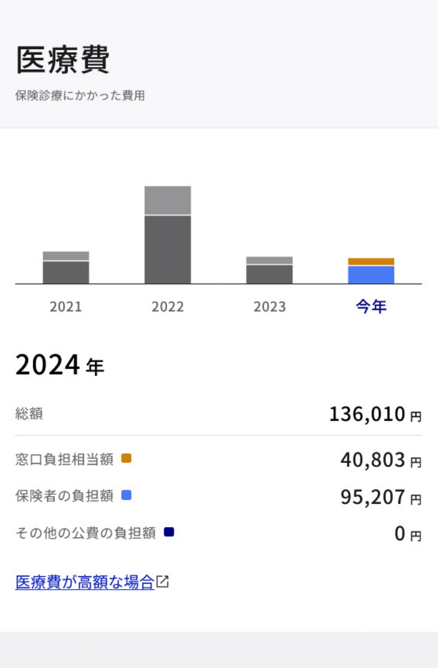 マイナ保険証を利用すると、マイナポータルで過去に健康保険で受診した医療費の情報を確認できるようになります。医療費の情報以外にも医療機関の受診履歴、処方された薬の情報も閲覧することができます。医療情報は毎月11日に前々月の診療分の情報が更新されます。
